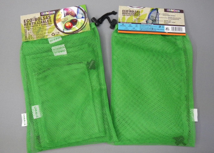 Contenido: 5 bolsas de malla 100% poliéster y jareta de las siguientes medidas: